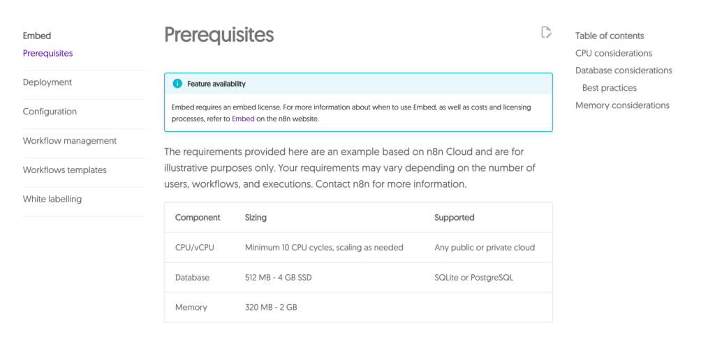 Sebelum melakukan instalasi n8n, pastikan VPS Anda telah memenuhi persyaratan yang sudah dijelaskan di website resmi n8n sebagai berikut: Prerequisites