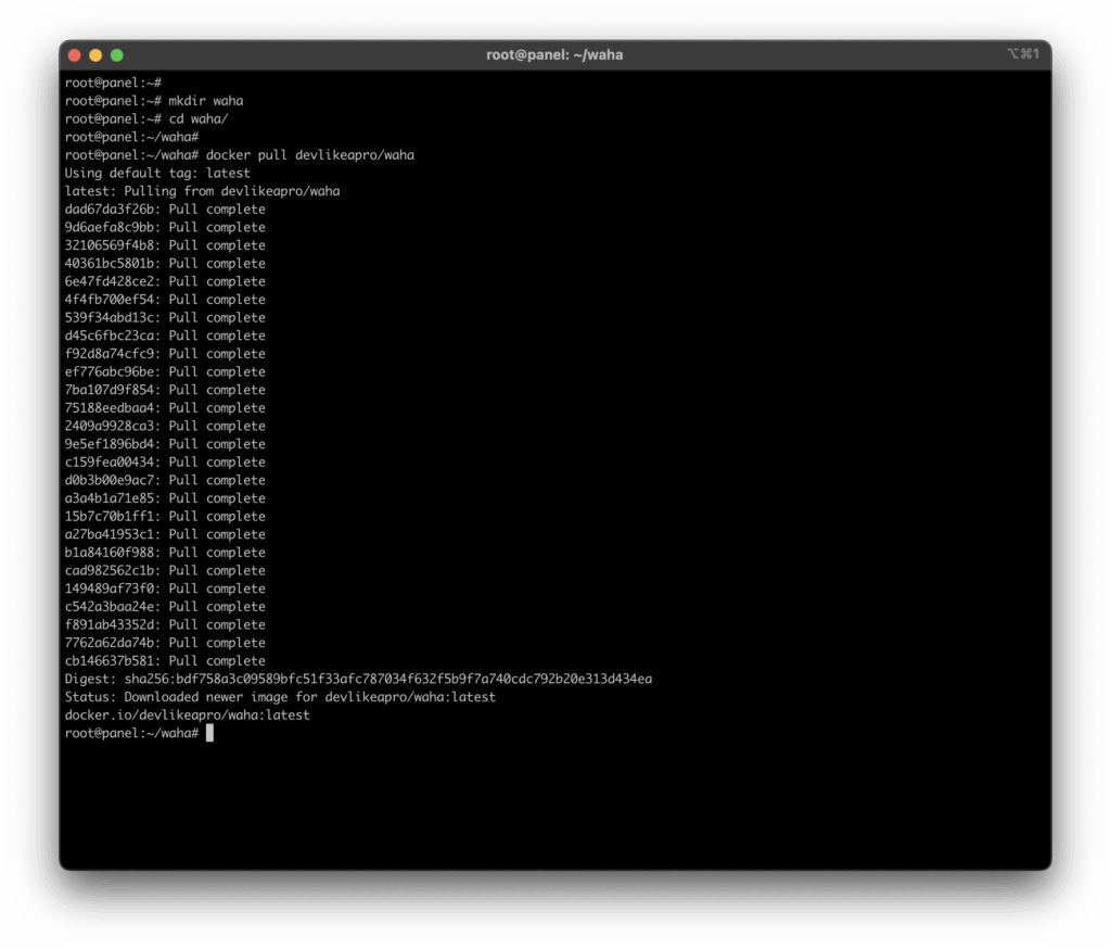 root@panel:~# mkdir waha
