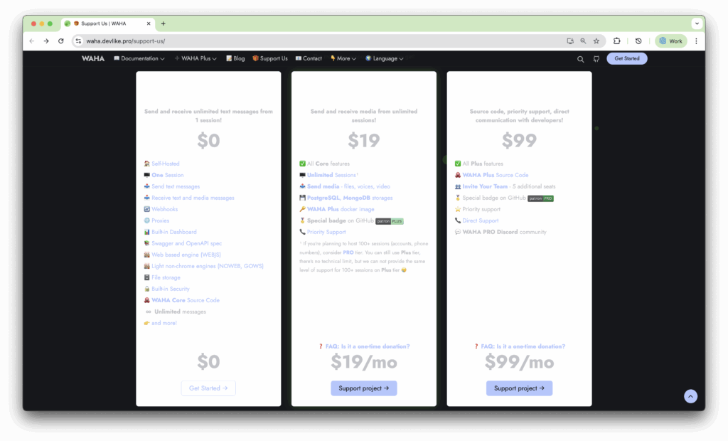 - WAHA Plus : Digunakan untuk production dan perlu subscribe license