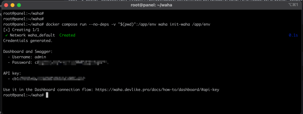 root@panel:~/waha# docker compose run --no-deps -v "$(pwd)":/app/env waha init-waha /app/env