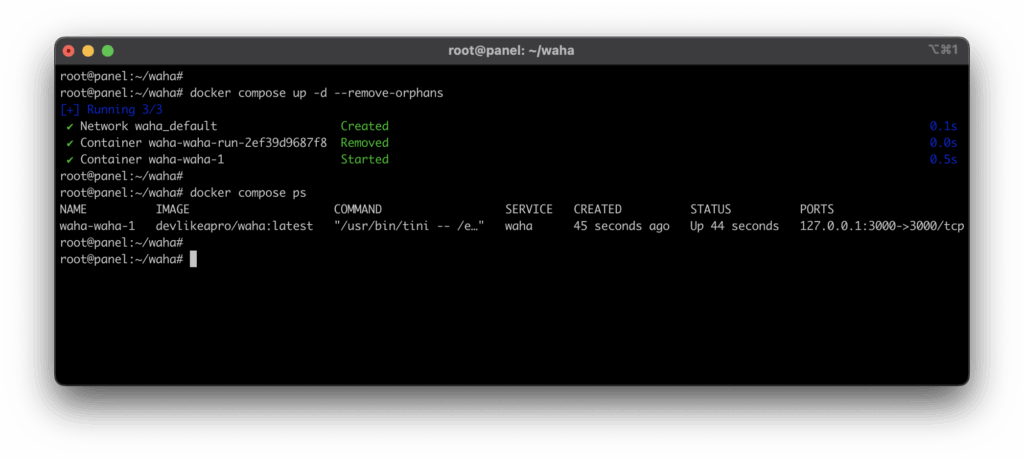 root@panel:~/waha# docker compose up -d --remove-orphans