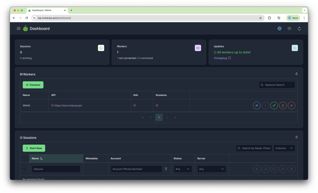 Klik Dashboard untuk melihat dashboard WAHA