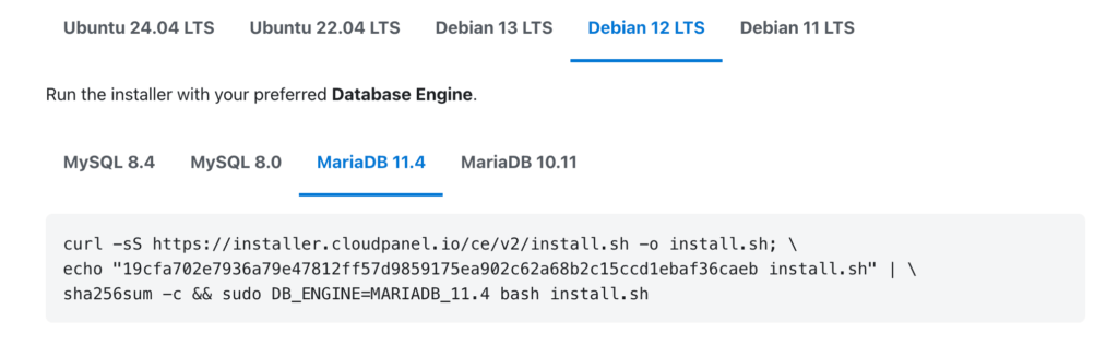 sha256sum -c && sudo DB_ENGINE=MARIADB_11.4 bash install.sh