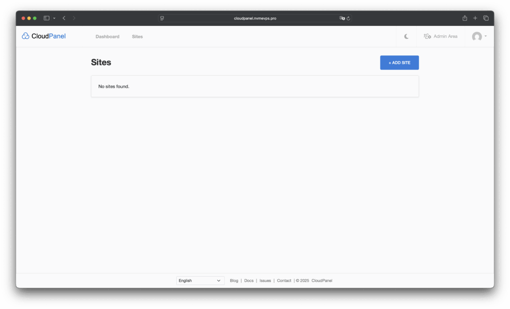 Saat ini Anda sudah berhasil login ke Admin CloudPanel